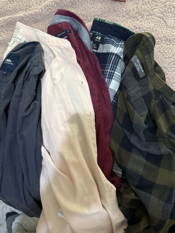 Erkek Gömlek, uzun kollu ve kesik yaka detaylıdır. Rahat kesimi ve düğmeli önü ile çok renkli ve desenli seçenekler sunar. Hepsi yeni gibi biri kisa kollu gerisi uzun kollu. Hepsi 250 bedenler xs ve s