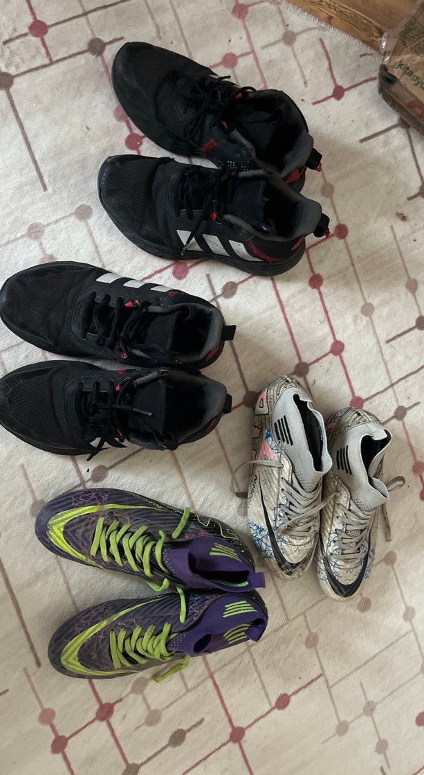 Koyu çok renkli erkek spor ayakkabıları, kauçuk tabanlı ve Velcro bantlıdır. 36 37 numaradır 4 tane ayrı ayakkabı tekli de alınabilir tek fiyatı 500