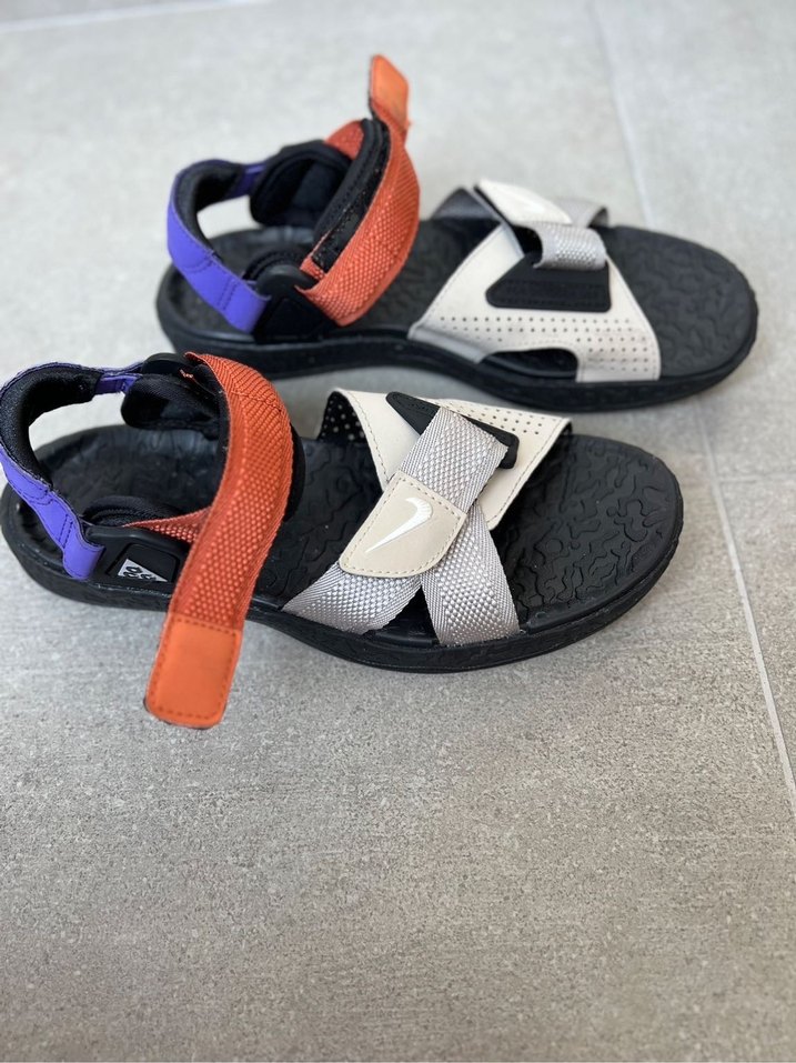 Erkekler için çok renkli, Velcro bantlı spor sandaletler. Kauçuk malzemeden, sokak stili ve athleisure için uygun. Rahat ve trend günlük kullanım için.