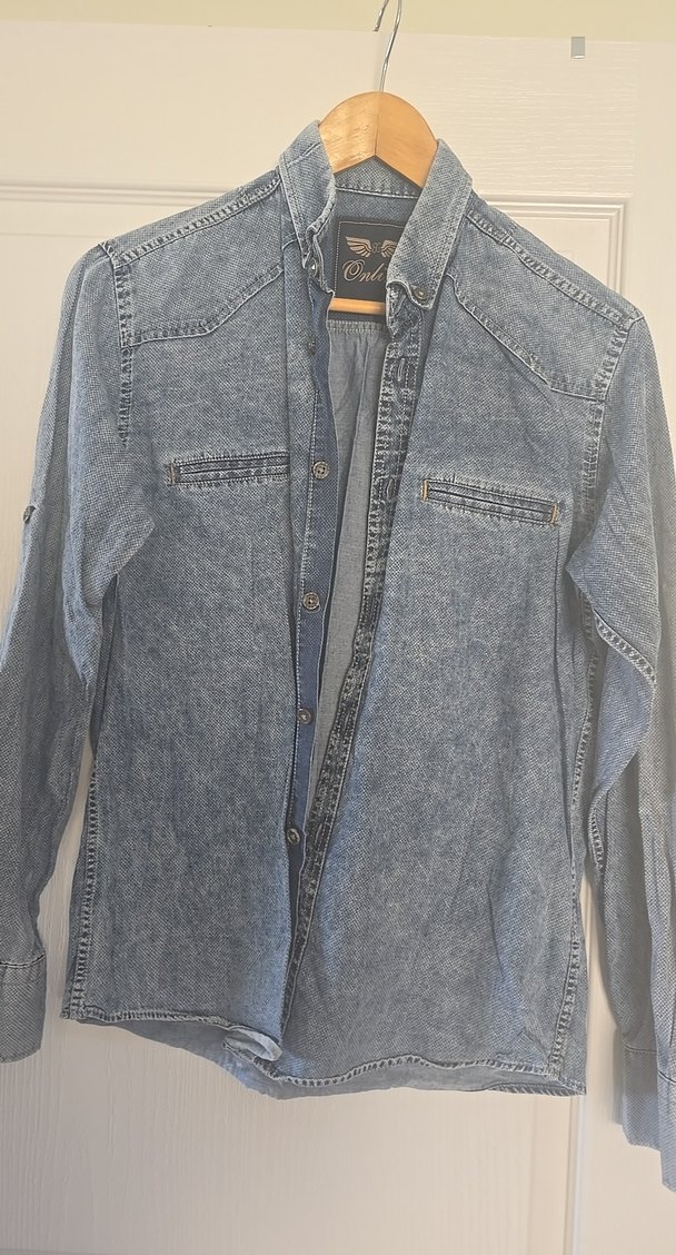 Kot görünümlü normal boyda erkek denim gömlek.Günlük kullanıma uygundur.