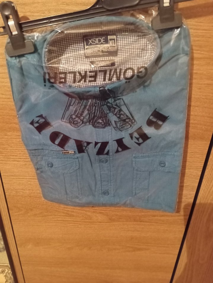 Erkekler için denim kısa kollu, baskılı, bol kesim tişört. Bisiklet yaka ve fermuarlı detaylar içerir. Mavi ve gri tonlarında sokak stili için uygun.