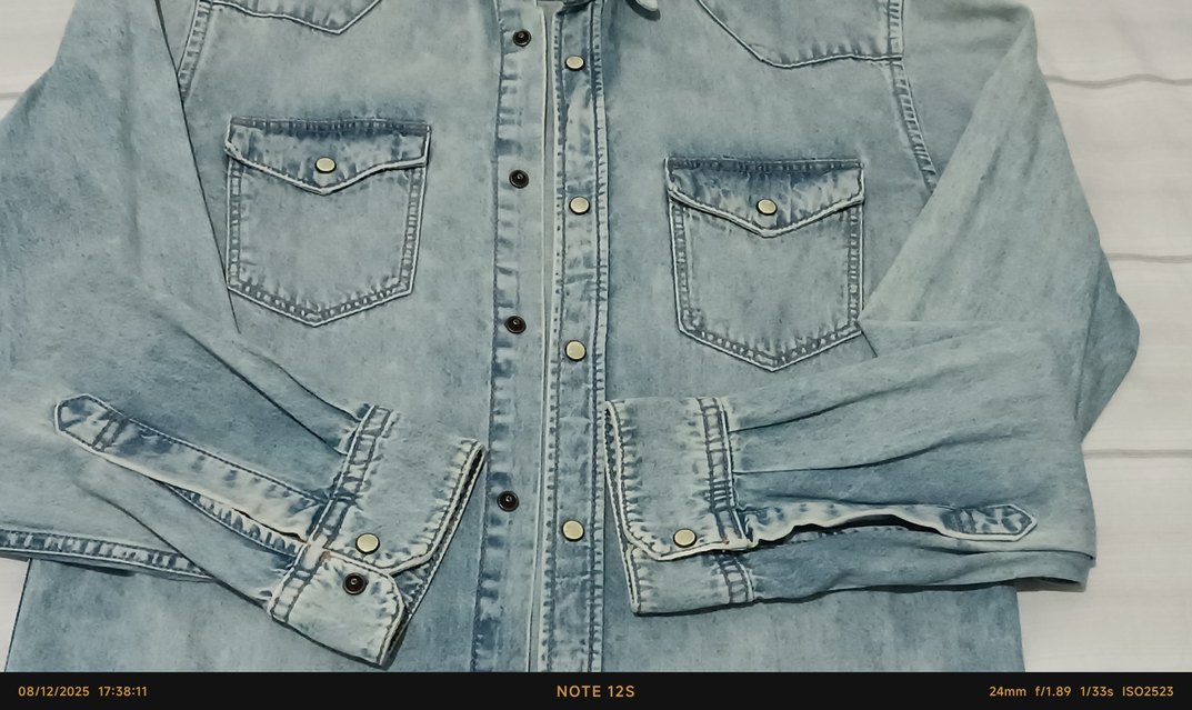 çıtçıt Düğmeli, uzun kollu, yaka detaylı açık mavi erkek denim ceket. Normal midi boyda, günlük sokak stiline uygun. tertemiz bir üründür...