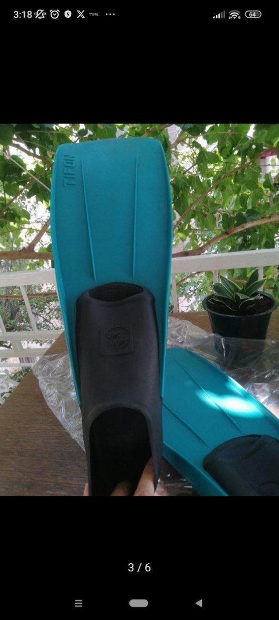 Koyu mavi renkte, kauçuk malzemeden yapılmış, Velcro bantli erkek Deniz paleti 2 kez kullanıldı