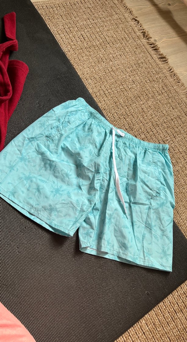 Pastel mavi renkli, mini boy ve bol kesim erkek deniz şortu, plajda rahat ve şık bir kullanım sunar. Marka temsili
