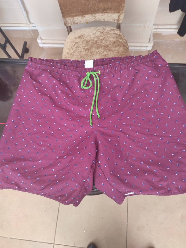 erkek deniz şortu, bol kesim ve yeşil bağcıklı, rahat plaj kullanımı için uygundur. bel 102 cm. boy46 cm.