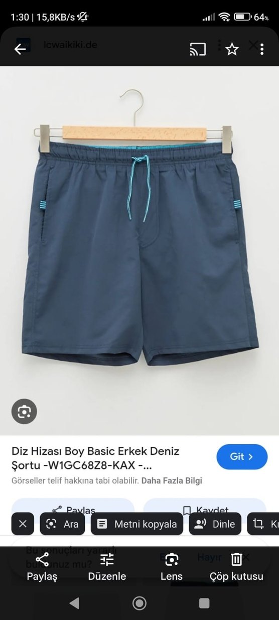 Indigo renkte diz hizasında, elastik bel ve bağcıklı erkek basic deniz şortu. Desensiz ve sade tasarım.Lcw marka S beden 1 kere giyildi rahat urun hemen kurur.mavi gri tonu gibi