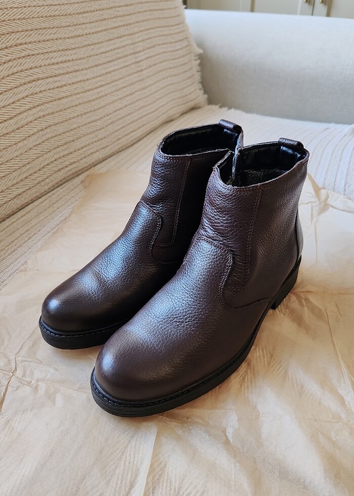 Erkek. Deri, İçi tüylü, çok az giyilmiş, sorunsuz bot.