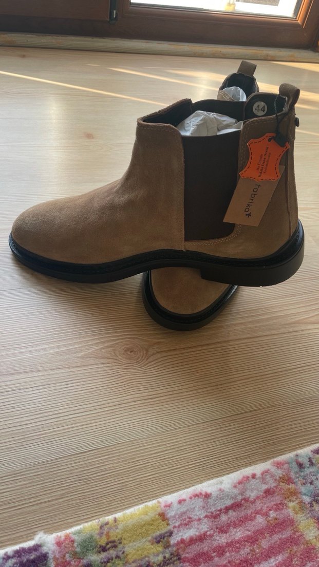 Sıfır hiç giyilmedi etiketli Fabrika marka 44 numara erkek deri bot.