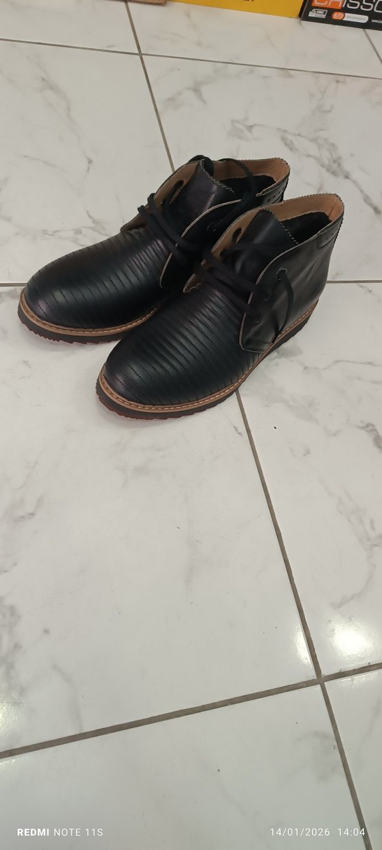 Koyu kahverengi deri erkek botlar, tokalı detaylarla, trend sokak stili için uygun, günlük kullanım için ideal. sıfır ürün %100 deri