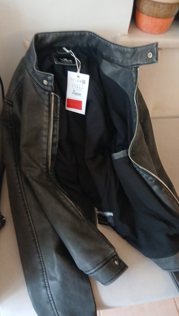 Erkek için gri deri biker ceket, dar kesim, çıtçıtlı yakalı ve fermuarlı ön detaylıdır. Uzun kollu ve baskılı desene sahiptir. Pull and bear