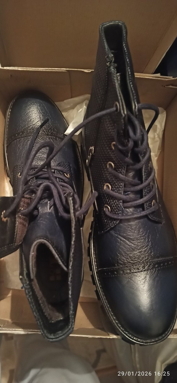 Erkekler için Lacivert Deriden, Fermuarlı ve bağcıklı bot. Sıfır Ürün. Günlük kullanım ve sokak stiline uygun.