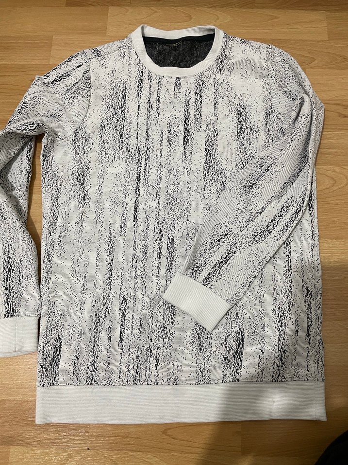 Yuvarlak yaka, uzun kollu, desen figürlü beyaz renk erkek Sweatshirt. Rahat kesimiyle günlük ve sokak stiline uygundur.