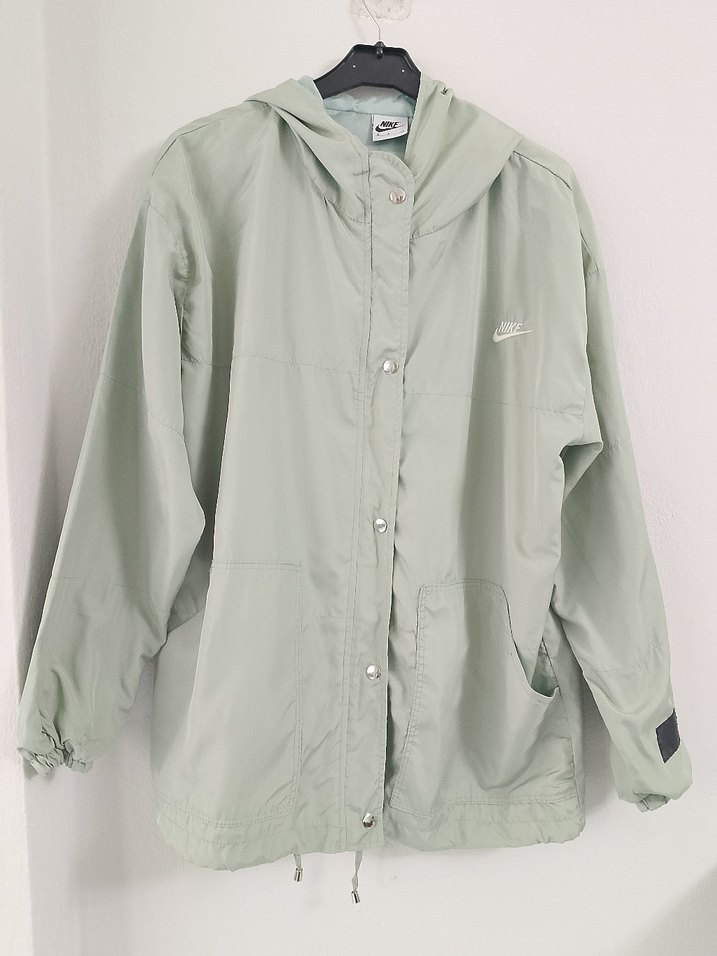 Erkekler için düğmeli, kapüşonlu, bol kesim gri rüzgarlık. Uzun kollu, lastikli manşetli ve ön cepli. Günlük kullanıma uygun. göğüs 62 boyu 73 cm