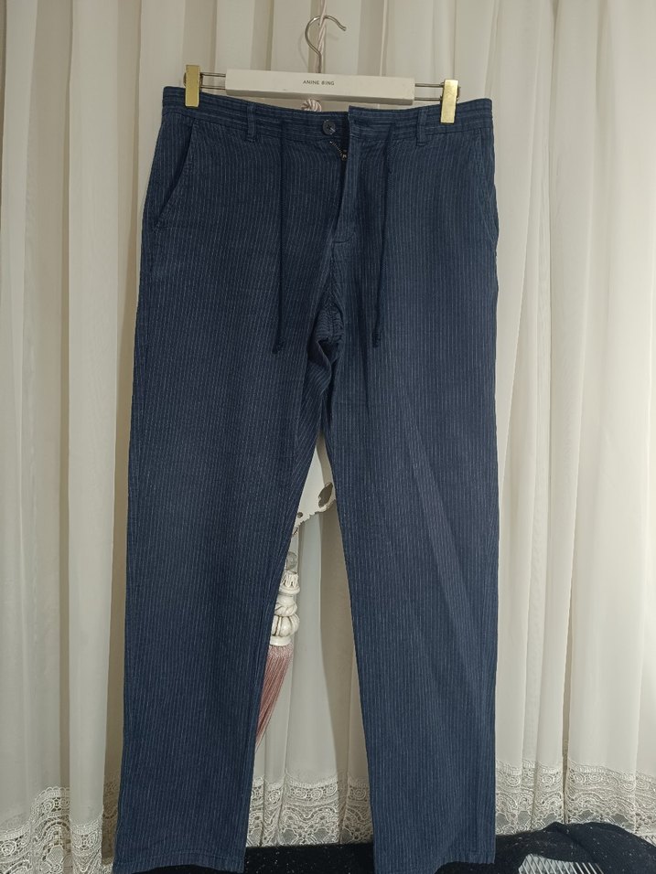 Erkekler için düğmeli, normal boy lacivert denim pantolon. Hafif tie-dye desenli, günlük rahat sokak stili için uygundur.
