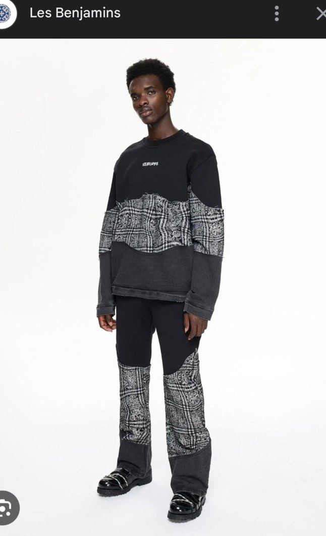 Siyah ve gri denimden, . Batik desenli, günlük kullanım için rahat ve şık sokak stili sunar.