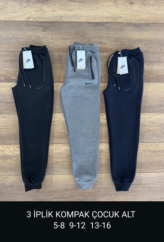 3iplik, elastik bel bantlı ve normal boyda erkek eşofman altı. Yumuşak ve sıcak kumaştan üretilmiş, spor ve günlük kullanım için uygundur. 5-8, 9-12, 13-16 beden seçenekleriyle.