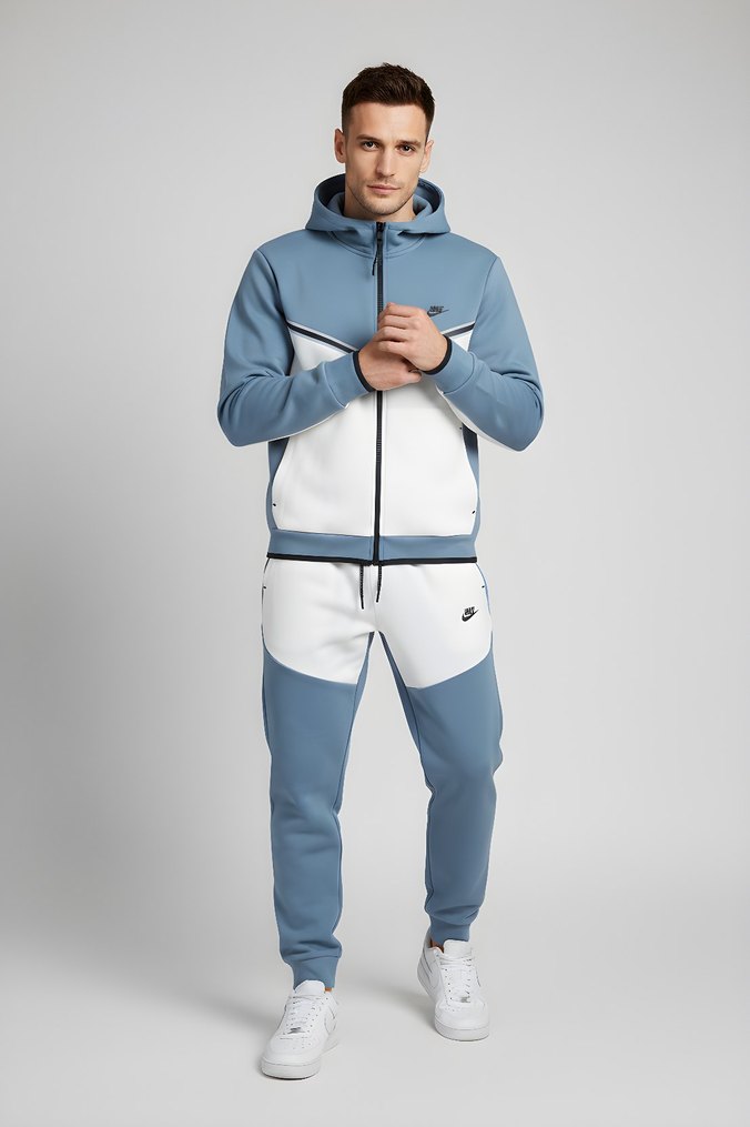 Bu erkek eşofman takımı,mavi ve beyaz renklerde, fermuarlı ön kısmı ve kapüşonuyla trend sokak tarzı sunar. Sıcak tutan yumuşak ve kalın kumaştan yapılmıştır. ♂️ birinci sınıf double face kumaştan üretilmiştir.