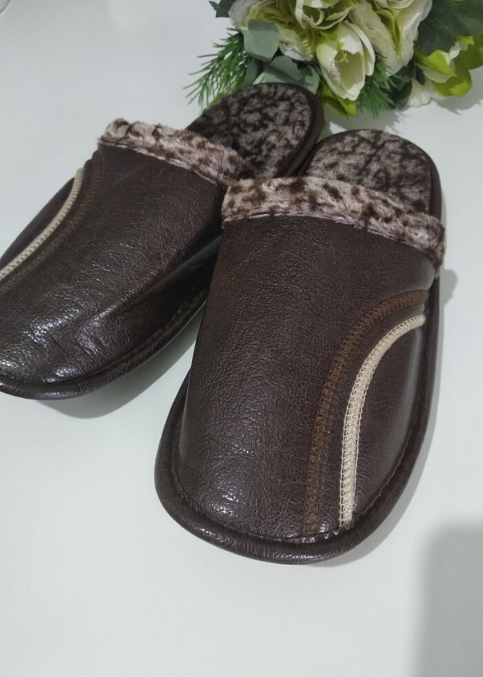 Deri görünümlü erkek ev terliği sıfır ürün..