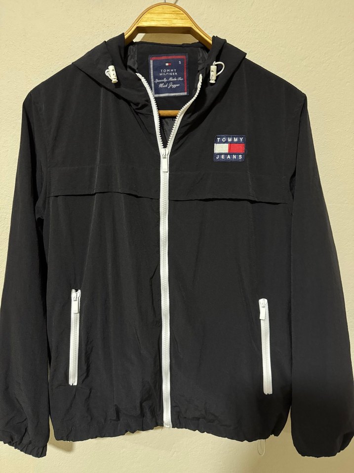 Yağmurluk ceket. Erkek siyah fermuarlı street wear ceket, uzun kollu, yumuşak fleece malzeme. Göğüste baskılı Tommy Jeans logosu bulunur. Dış mekan için uygundur.