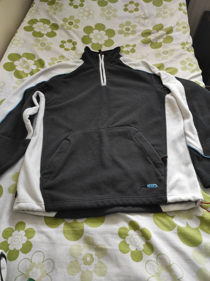 Fermuarlı yüksek yakalı, uzun kollu ve bol kesim gri-beyaz polar sweatshirt ve alt ikili eşofman takımı.Sokak stili ve dış mekan kullanımı için uygundur. Almanya'dan aldık eşim iki kez kullanmadı kalın tam kışlık. ölçüleri görselde mevcuttur. M beden yazılı ama L bedene uygun. Koyu füme rengi var.