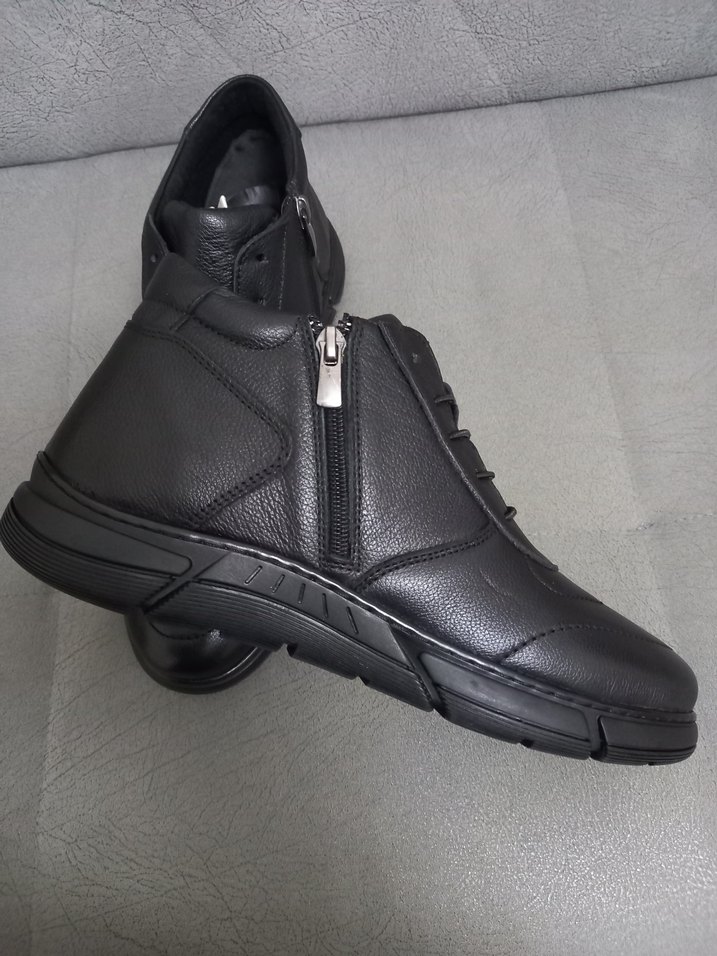 Erkekler için fermuarlı siyah deri bot dayanıklı kauçuk malzemeden üretilmiştir. Günlük kullanıma uygun, trend sokak stiline hitap eder. kaymaz taban iç ölçü 26.cm rahat kalıp iç tabanlık 5 nokta Orta Pedik