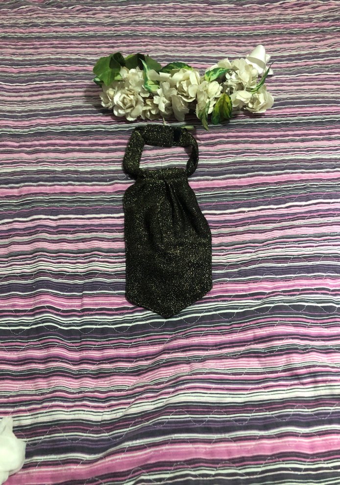 Siyah üstüne sarı simli boyundan çırtlı fular. Özel tasarım. Damatlık içinde kullanıldı.