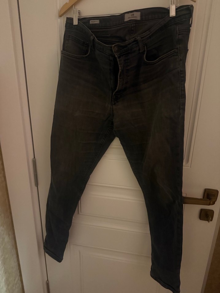 Füme denimden yapılmış, regular fit kesime sahip ve tokalı detayları bulunan erkek kot pantolon, günlük kullanıma uygundur.