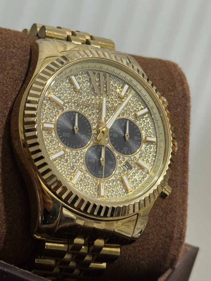 Orijinal kutusunda Michael Kors gold renk tarih kronometre bulunan tüm fonksiyonlari tuşları aktif çalışan içi taş detaylı nadir emsalsiz temizlikte erkek saati