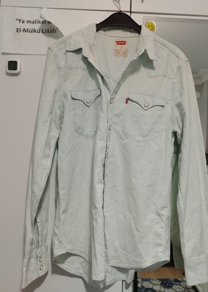Levi's erkek gömlek. Boyun kısmında sararma vardır ve kol altında defo var görselde belirttiğim gibi. Fiyatına yansittim.