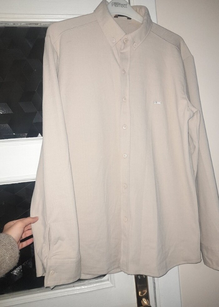Erkek gömlek sıfır etiketli hiç giyilmedi defosu yoktur M beden Camel renk kumaşı kaliteli