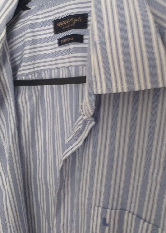 Abdullah kigili erkek gömlek kisa kollu 43/44XL mavi ve beyaz cizgili yaka ic kisminda ufak 3 adet deforme yer var