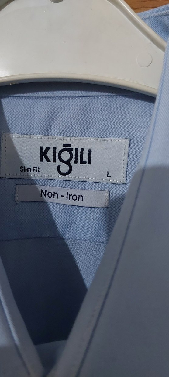 Buz Mavisi uzun kollu, düğmeli, normal boy ve slim fit erkek gömleği yakın fotoğrafta rengi belli oluyor ışıktan dolayı renk yanlış çıkmış rengi buz mavisi ütüsüz gömlek