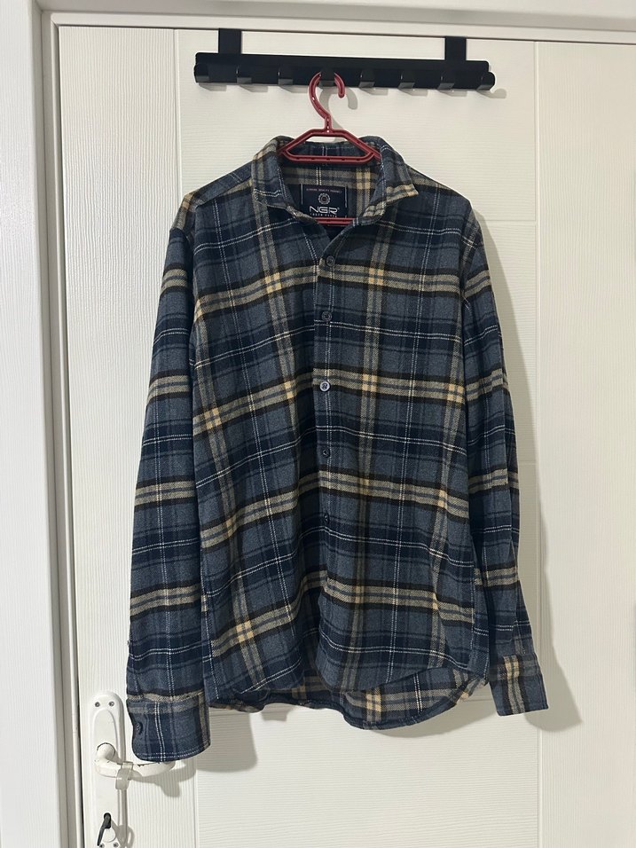 Uzun kollu, düğmeli ve polo yaka erkek gömleği. Yumuşak denim kumaştan, regular fit ve standart boyda. Mavi ekoseli deseni günlük kullanıma uygun rahat bir stil sunar. M beden uyumludur. Herhangi bir kusuru yoktur.