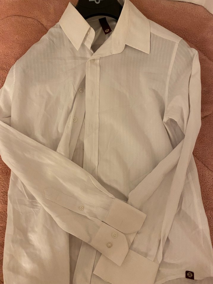 Düğmeli, yakalı ve uzun kollu beyaz keten erkek gömleği. Fitted kesim,desensiz, ceket, kıravat ve pantolon ile birlikte takım olarak gönderilecektir. Hiçbir kusuru yok. Çok uygun fiyata ekliyorum. Kiğılı marka.