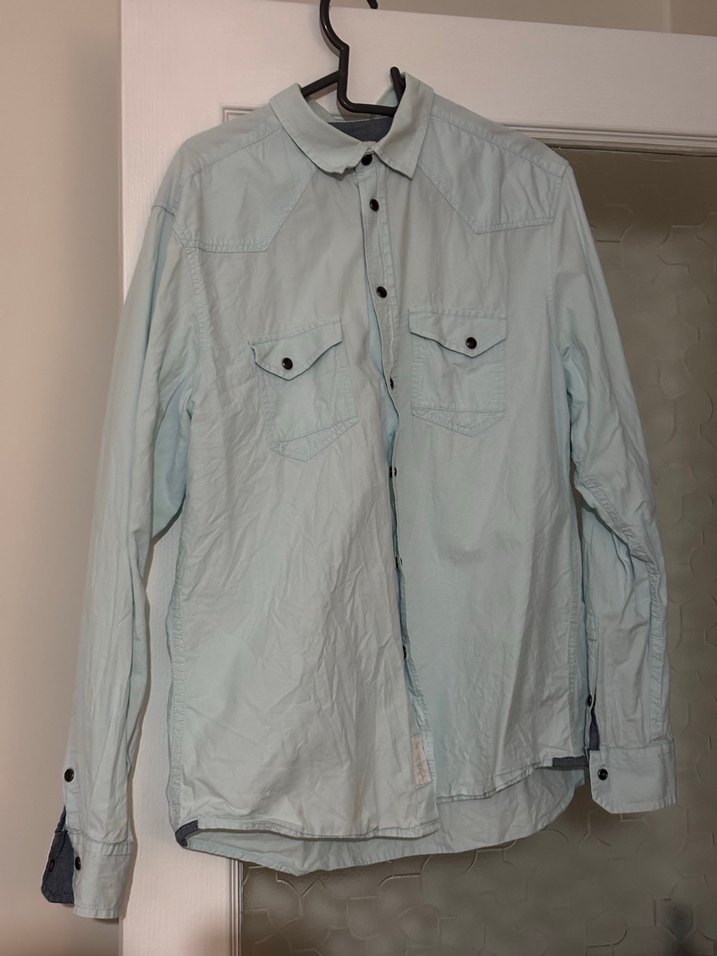 erkek gömlek, bol kesim çıtçıtlı ön tasarıma sahiptir. Uzun kollu, yakalı ve normal boydadır. İki göğüs cebi fonksiyonel detay sunar. Günlük kullanım için uygundur.