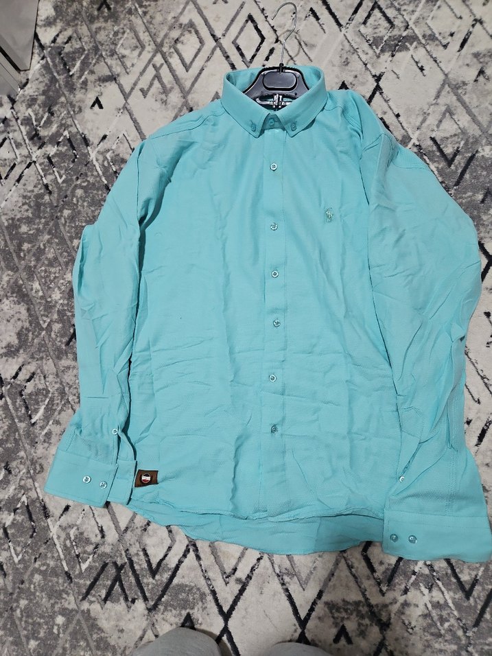 Turkuaz renk, uzun kollu erkek gömlek. Düğmeli, yakalı ve bol kesimdir. Yumuşak, sıcak kumaştan üretilmiş, rahat günlük kullanım için uygundur. Hic kullanilmamis sifir urun etiketi mevcut degildir xxl bedendir