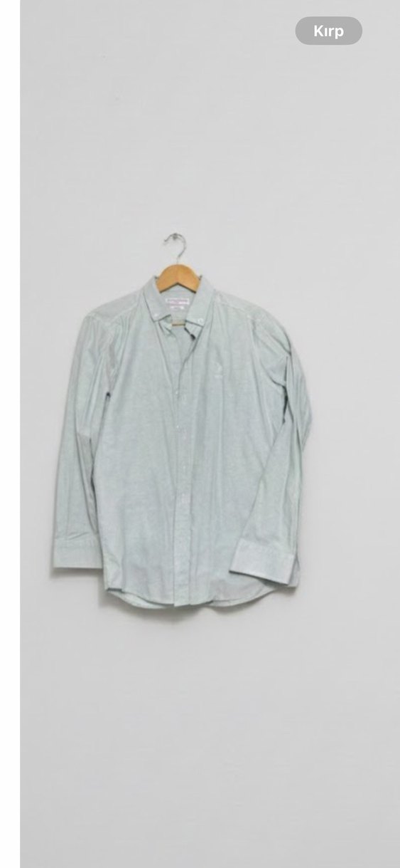 Mint yeşili erkek gömlek, düğmeli ve uzun kolludur. Normal boyda ve rahat kesimdir. Minimalist tarzıyla günlük kullanıma uygundur.