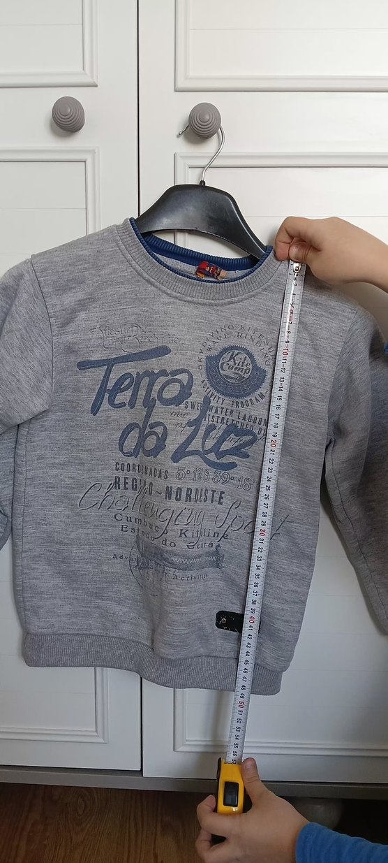 Gri renkli, baskılı desenli, uzun kollu, bisiklet yaka erkek sweatshirt. Denim kumaştan, rahat kesim ve cırt cırt detaylı.