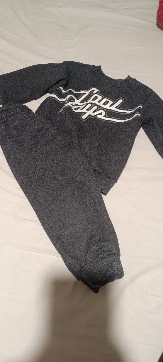 Erkekler için gri renkli, baskılı ve fermuarlı eşofman takımıdır. Bol kesim, bisiklet yaka ve yumuşak kumaş kullanılmıştır.