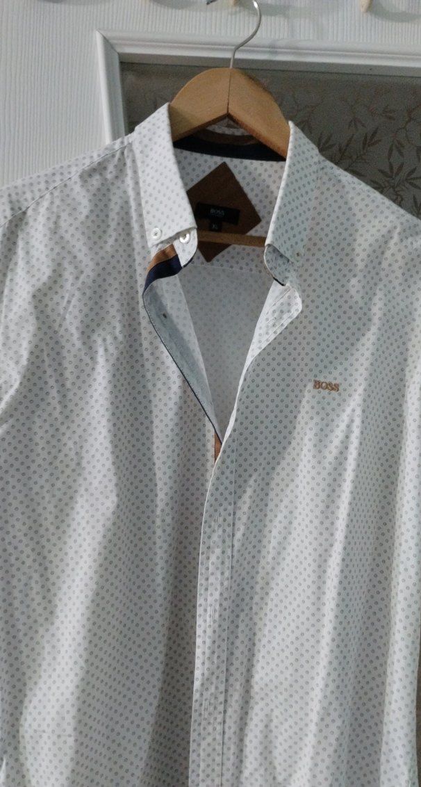 Erkekler için kısa kollu, düğmeli V yaka ve regular fit gömlek. Yumuşak pamuk kumaştan, gri baskılı desene sahip, günlük kullanım için uygun rahat kesim.