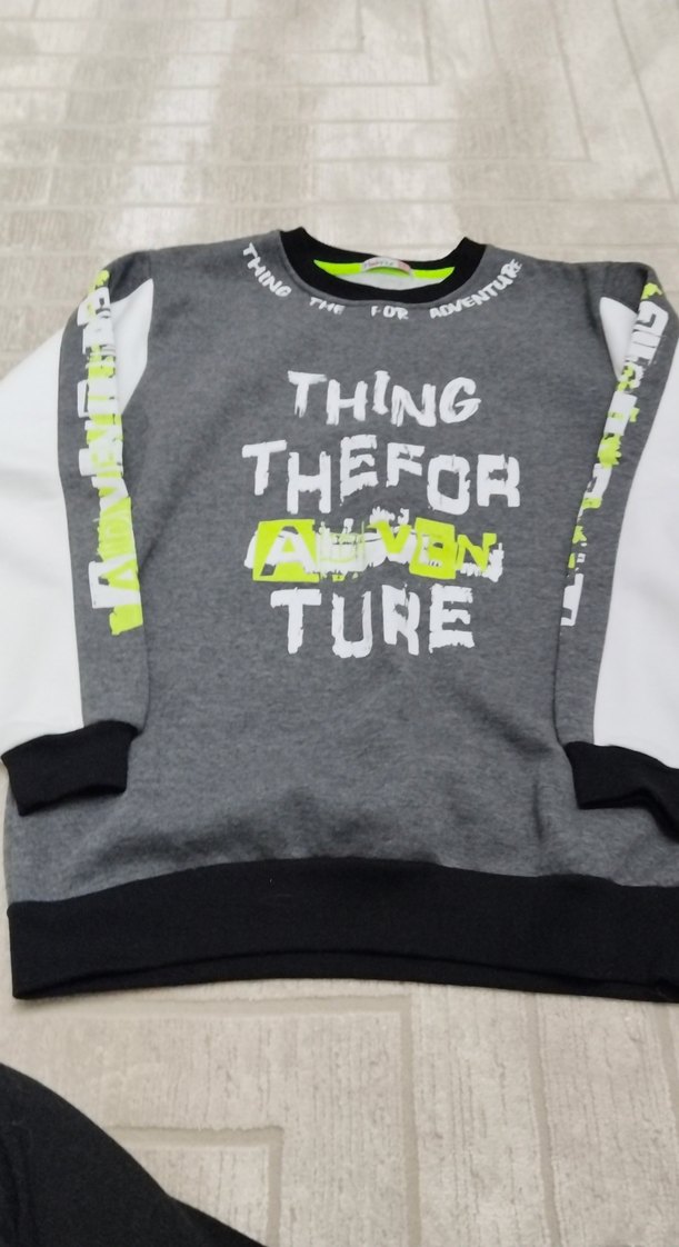 Fitted kesim, yuvarlak yakalı ve uzun kollu erkek sweatshirtü. Yumuşak örme kumaştan olup, gri zemin üzerinde baskılı yazılar ve beyaz kollarda neon detaylar bulunur. Sokak stili için uygundur.
