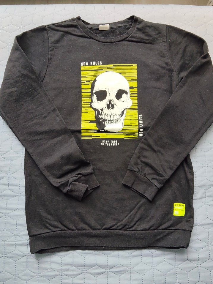Gri renkli, uzun kollu ve bisiklet yaka sweatshirt, baskılı kafatası deseni ve bol kesimiyle rock punk havası sunar. Sentetik kumaştan üretilmiştir.