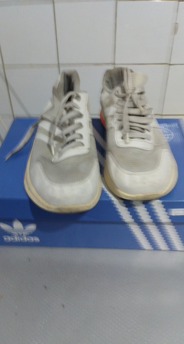 spor ayakkabıları, düz kauçuk taban ve bağcıklı tasarıma sahip olup gri ve beyaz renklerde, sportif ve günlük sokak stili için uygundur.