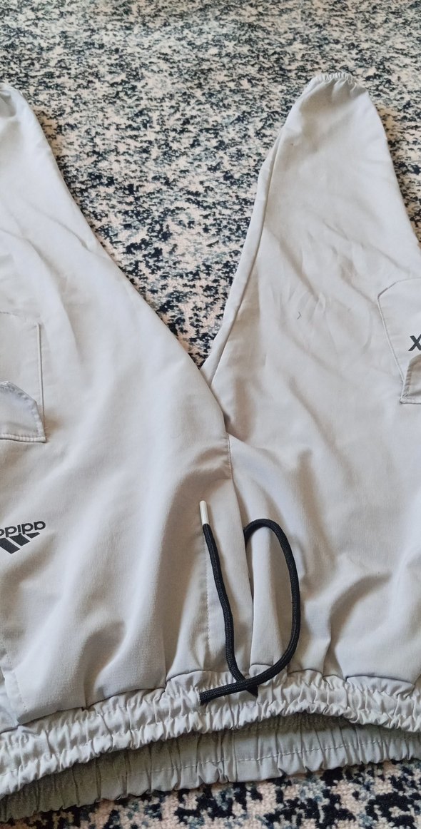 Gri beyaz renklerde, fermuarlı ve V yakalı, uzun kollu, normal midi boy erkek pijaması. Rahat kesimiyle athleisure tarzına uygun.