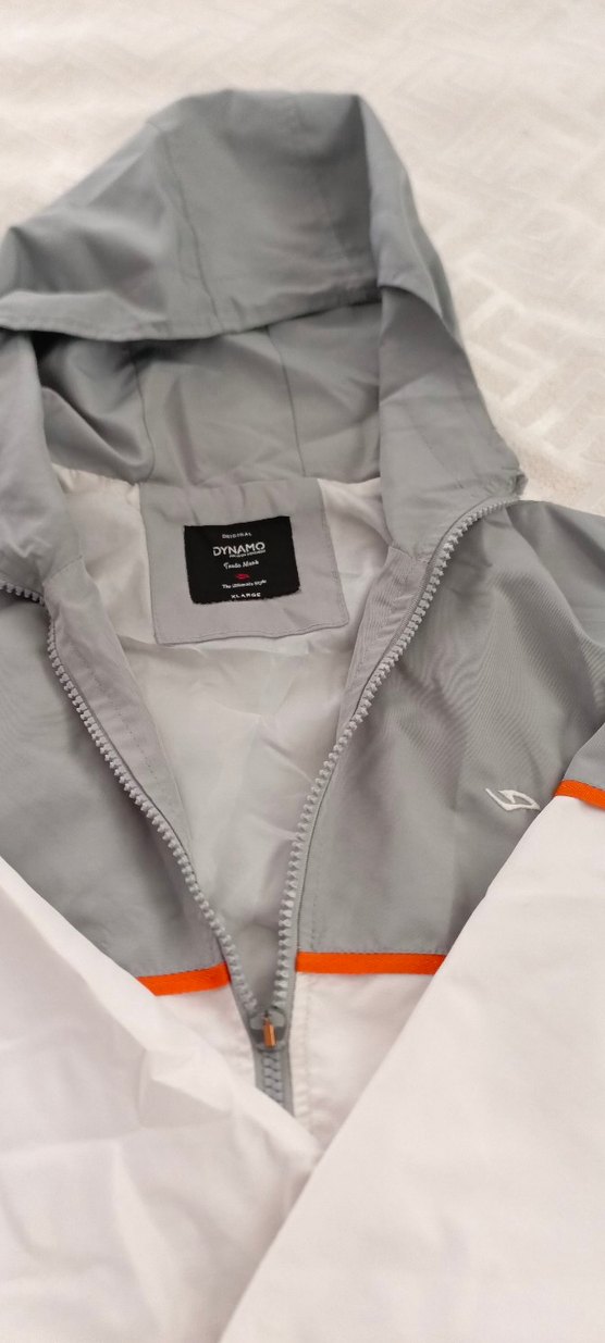 Erkek Gri-Beyaz Fermuarlı Yağmurluk
