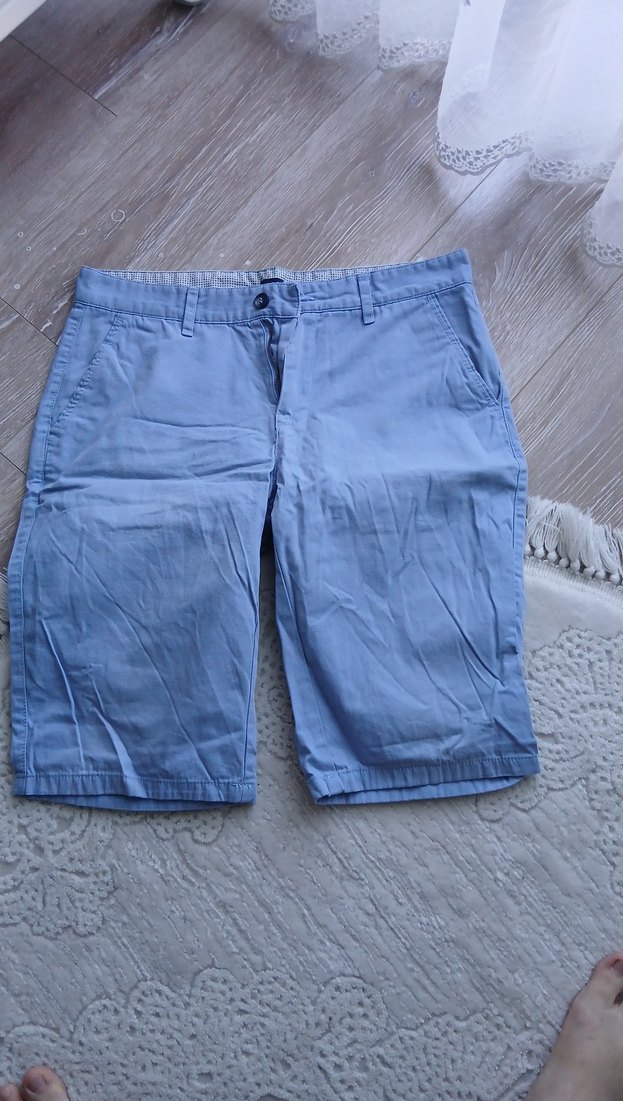 Erkekler için gri renkli, bol kesim, desen içermeyen denim şort. Günlük kullanıma uygun, rahat ve sade bir stil sunar.