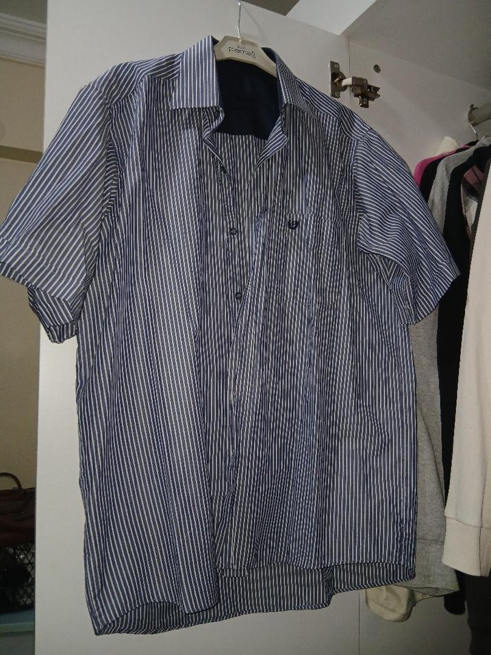 Erkek Gri Çizgili Kısa Kollu Gömlek