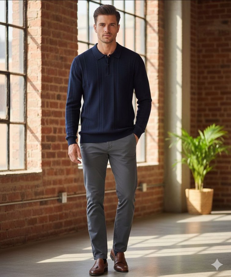 Erkekler için düğmeli, gri denimden yapılmış, normal kesim ve uzun kollu hırka. Ofis ortamına uygun, sade ve trend bir görünüm sunar.