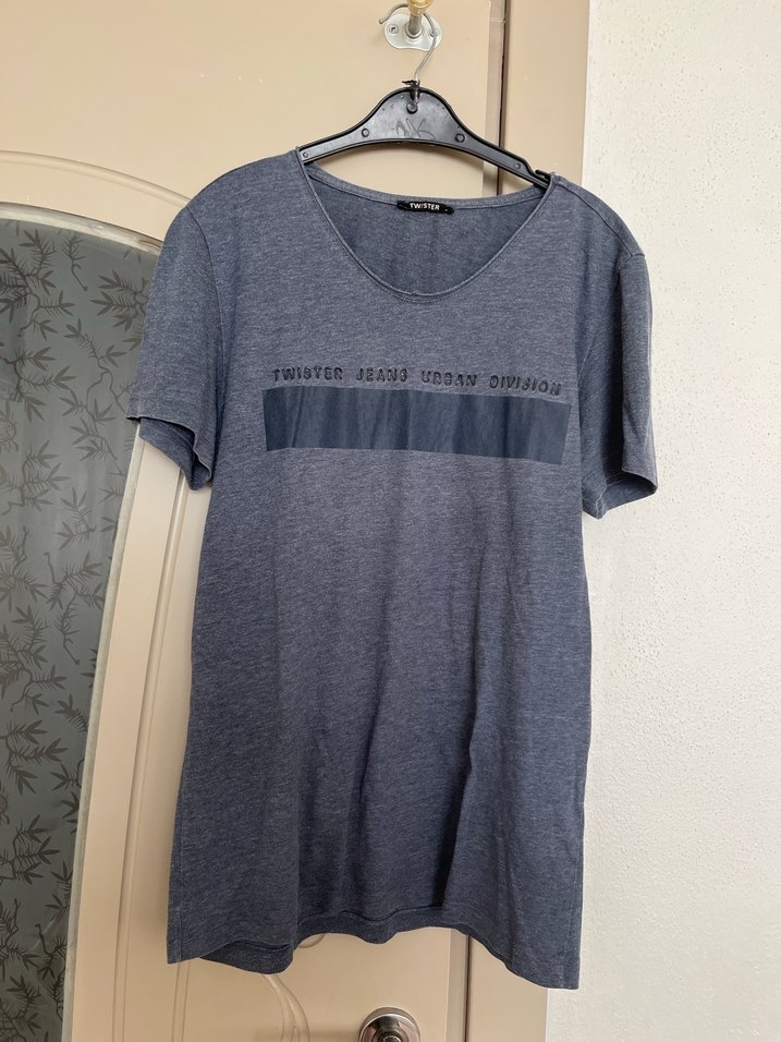 Erkek Gri Denim T-shirt
