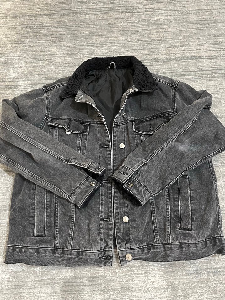 Erkek Gri Düğmeli Denim Ceket